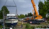 Bis zu einem Gewicht von 17 t können Sie Ihr Boot ganzjährig durch unseren unternehmenseigenen Krandienst aus dem Wasser heben oder ins Wasser einsetzen lassen.